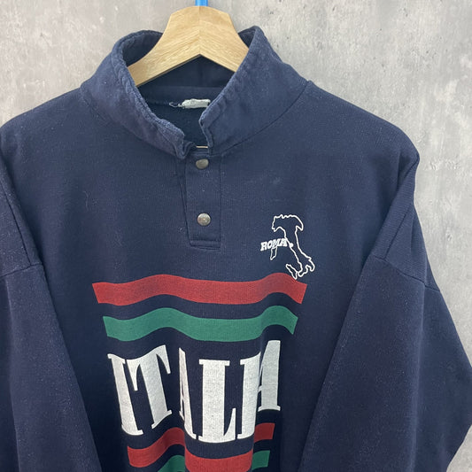 90s vintage 古着 ビンテージ ROMA ITALIA ハーフスナップ スウェット ネック 襟 ヨーロッパ ネイビー