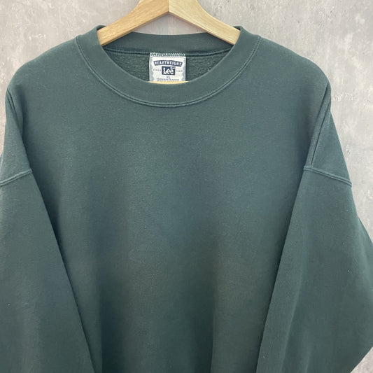 90s vintage 古着 ビンテージ Lee リー 無地スウェット USA製 単色 深緑 オーバーサイズ ストリート