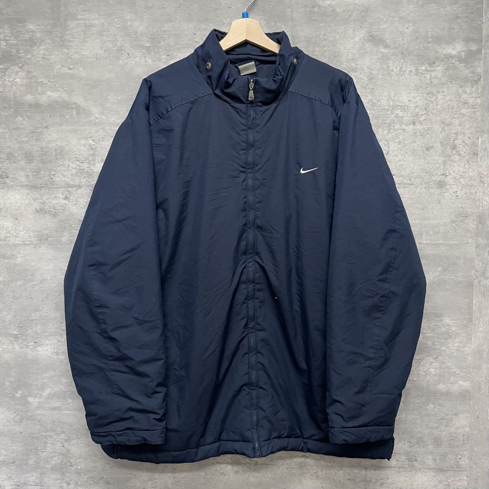 00s vintage 古着 ビンテージ NIKE ナイキ ナイロンジャケット フルジップ 胸元ロゴ バックロゴ ネイビー