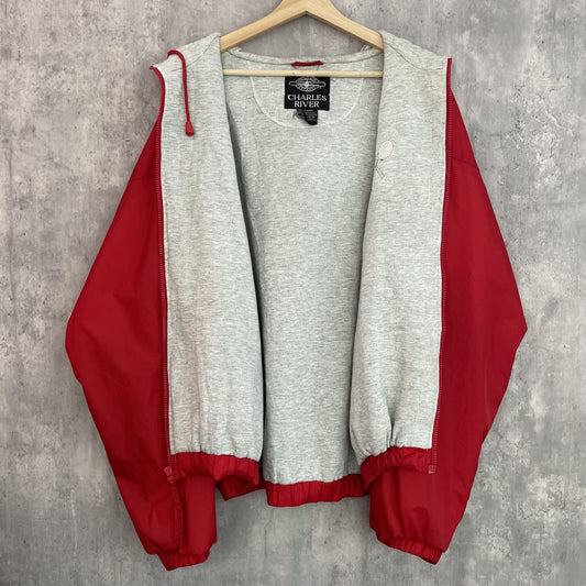 90s vintage 古着 ビンテージ CHARLES RIVER ナイロン ジップアップフーディージャケット 胸刺繍